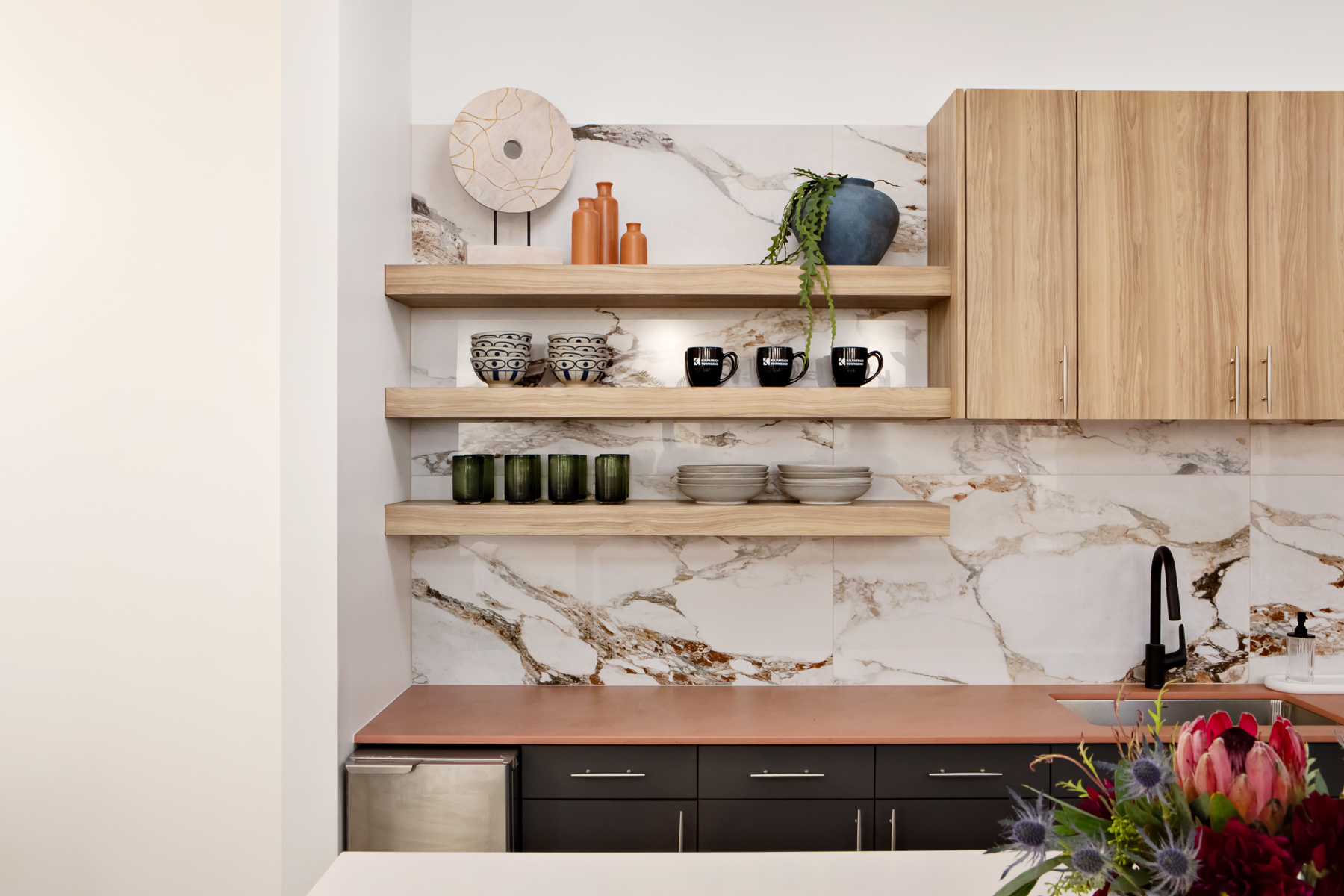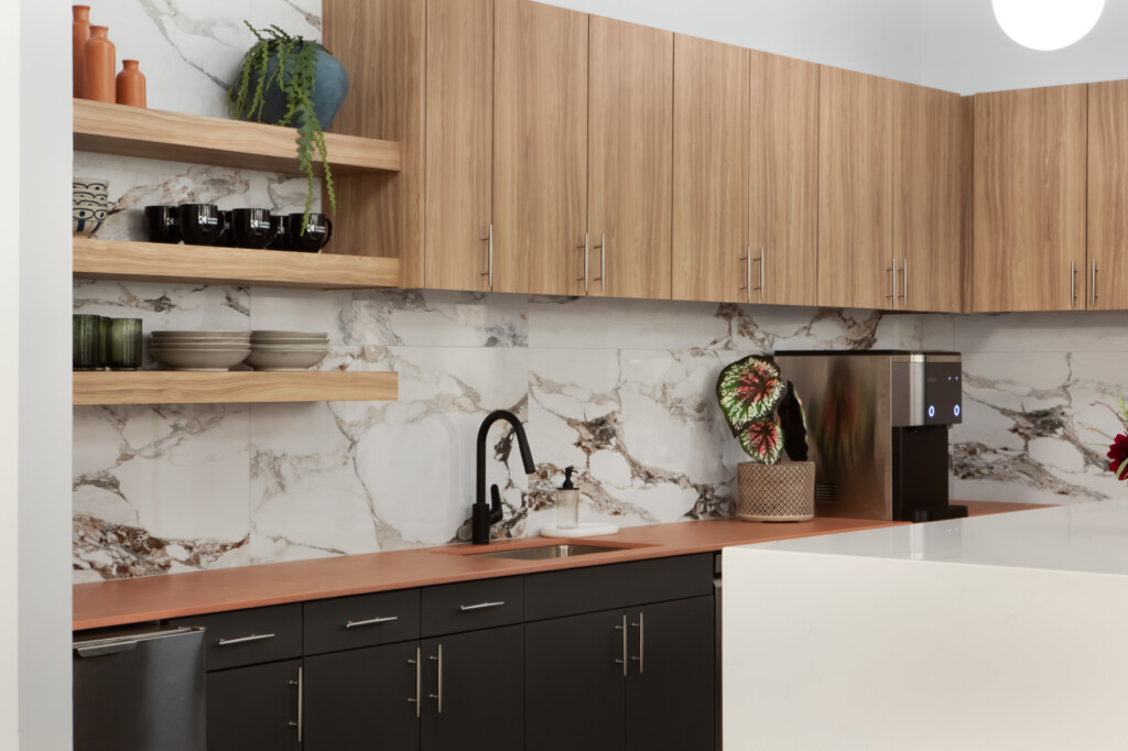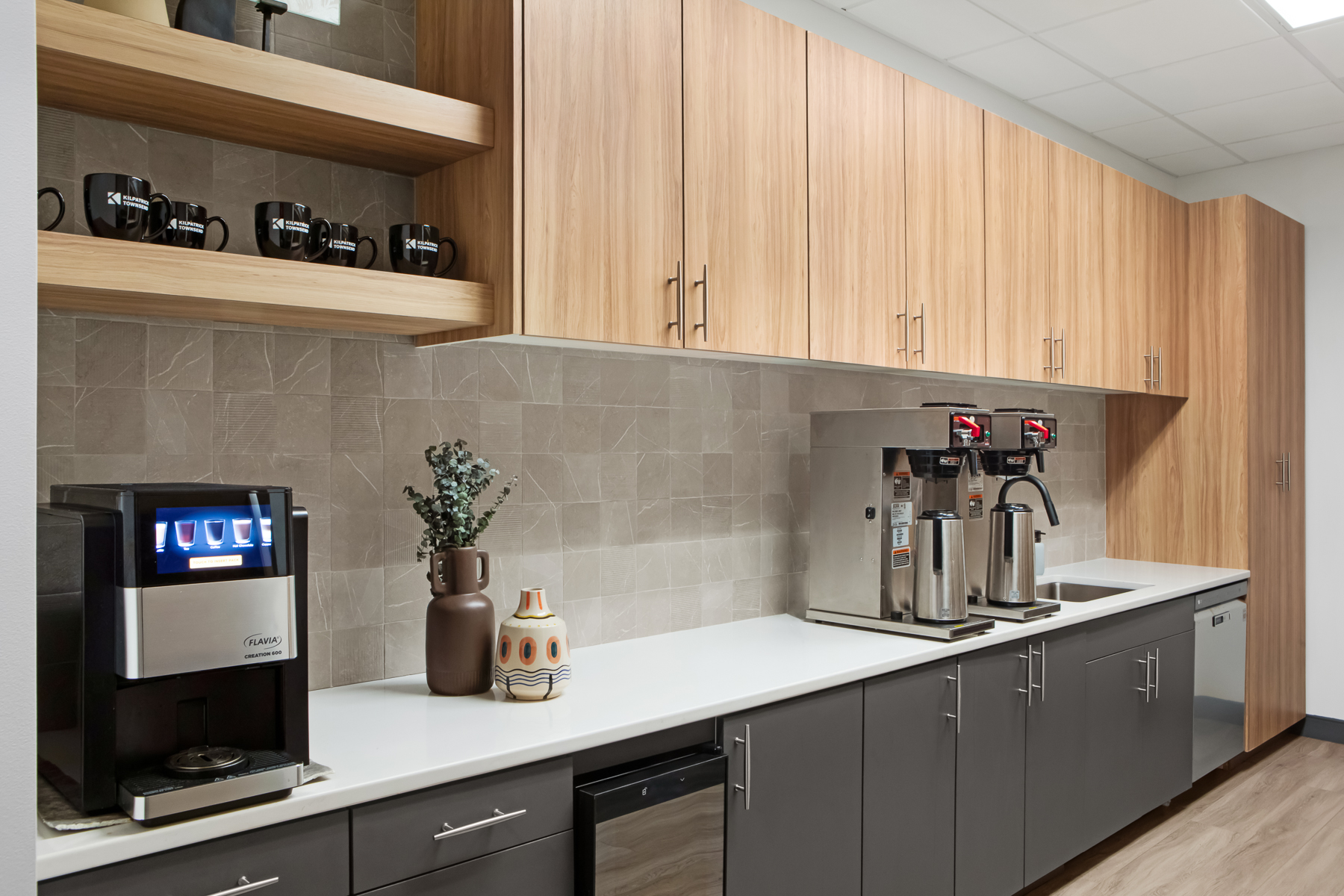 Through the use of warm finishes, cohesive cabinetry, and natural textures, the space now invites both comfort and connection. The transformation embodies the firm’s renewed approach to workplace design, where professionalism meets warmth, and culture comes to life through thoughtful details.
