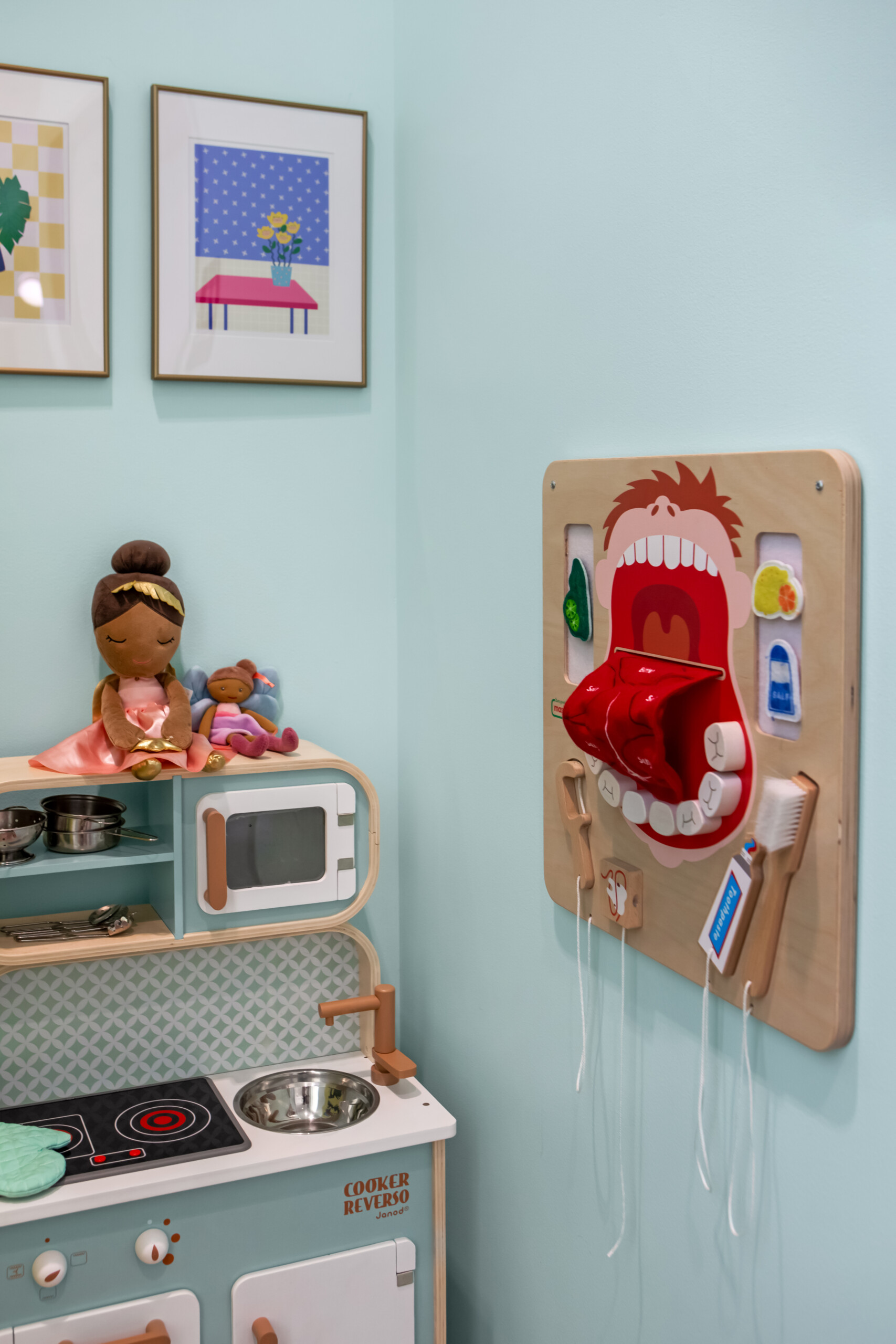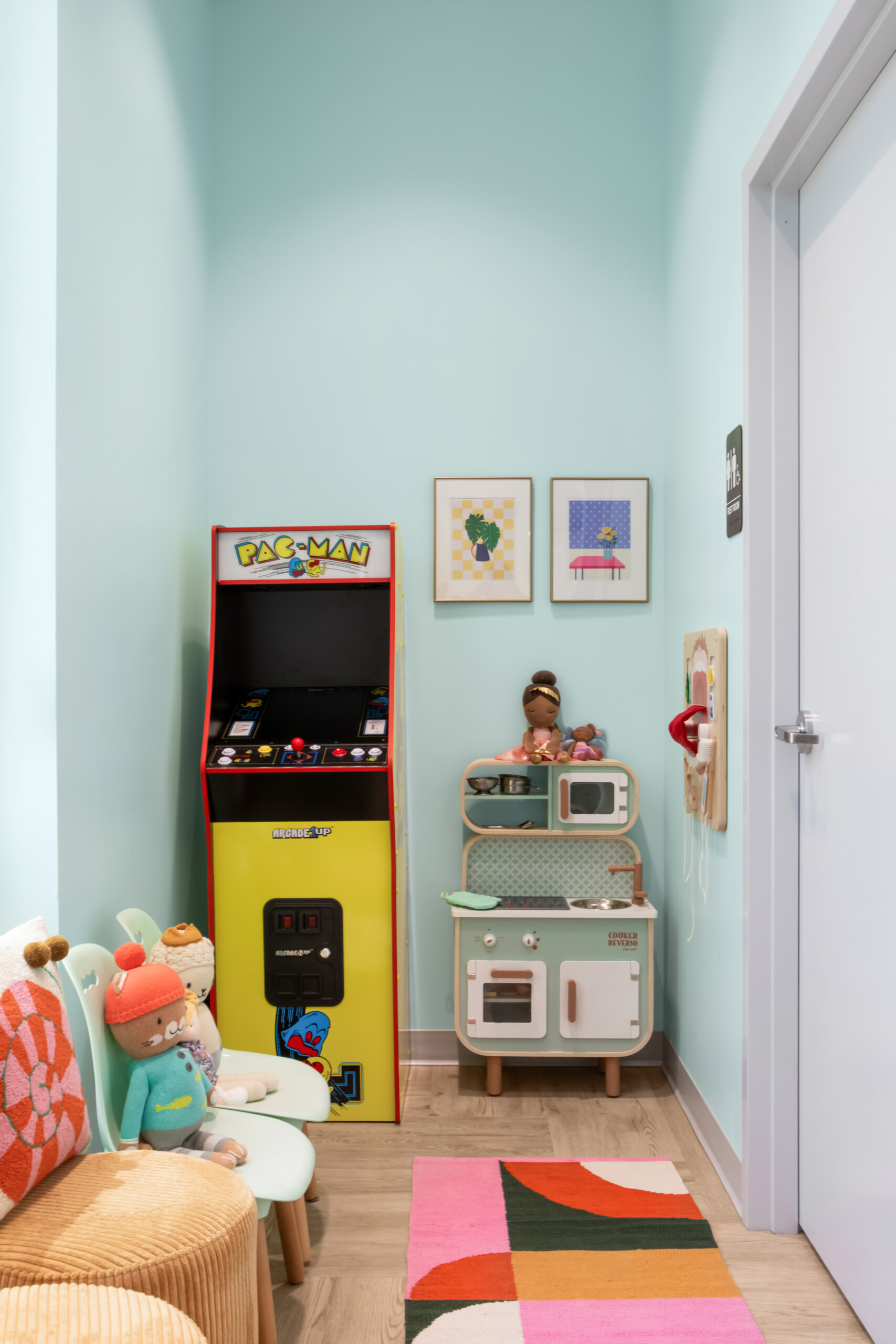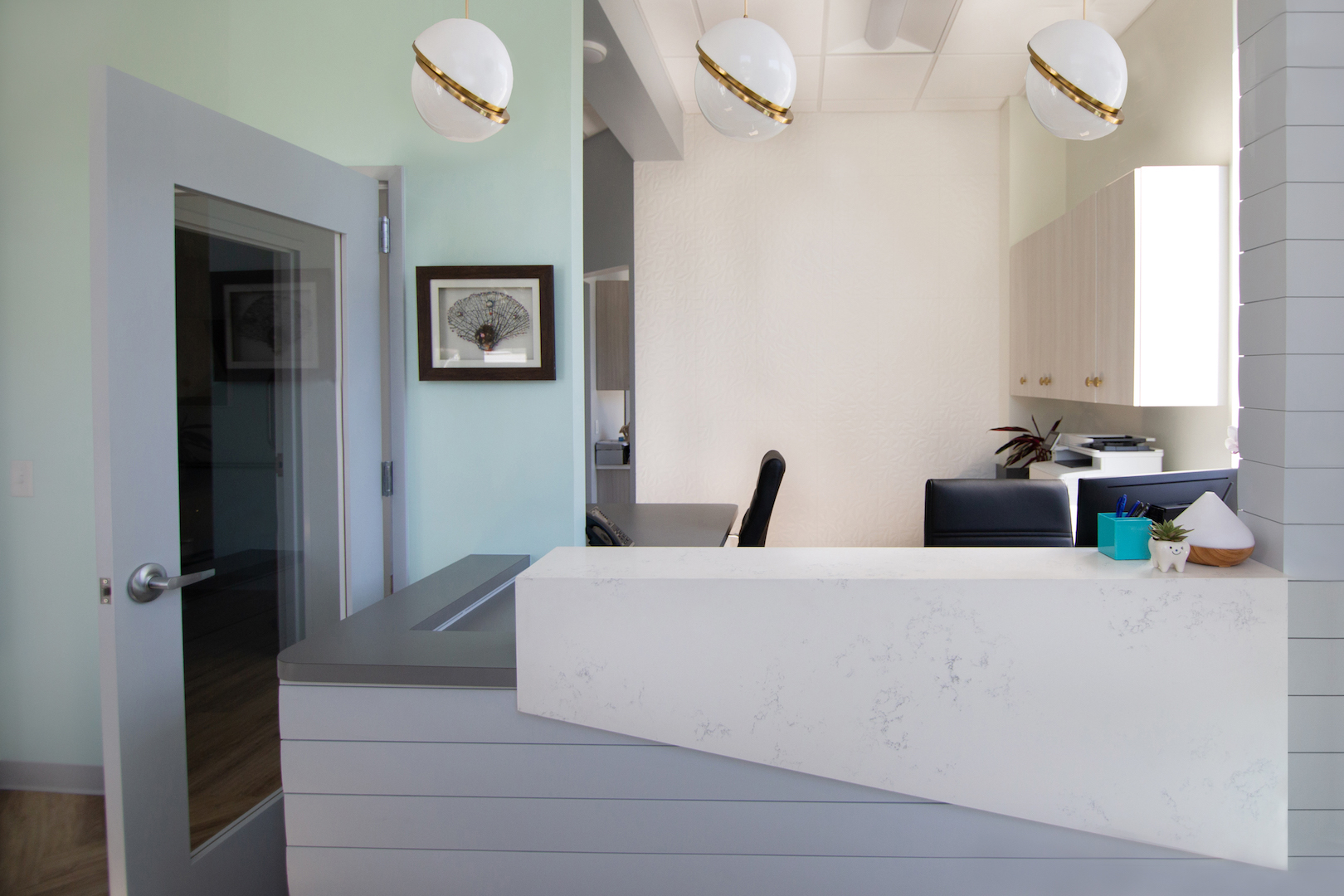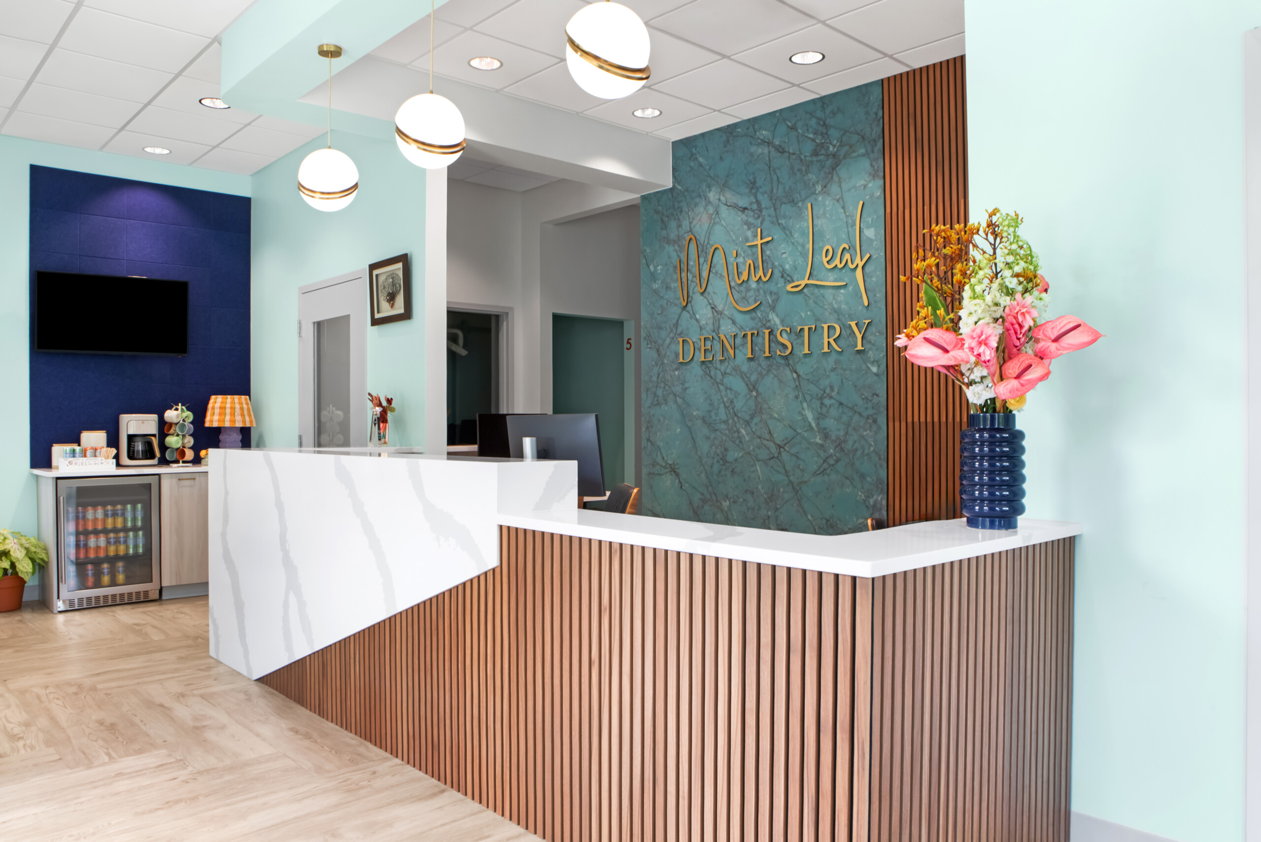 We were honored to be called back to Mint Leaf Dentistry, after 5 years since their first opening, to work on this commercial expansion of their office, which took the original concept and cranked up the personality with interior designer Frances Acevedo. With a larger footprint came the opportunity to infuse the space with more color, texture, and playful elements – from bold orange room numbers to a cozy children’s nook. The goal? Create a vibrant, welcoming environment that feels energizing yet comfortable for everyone who walks through the door.