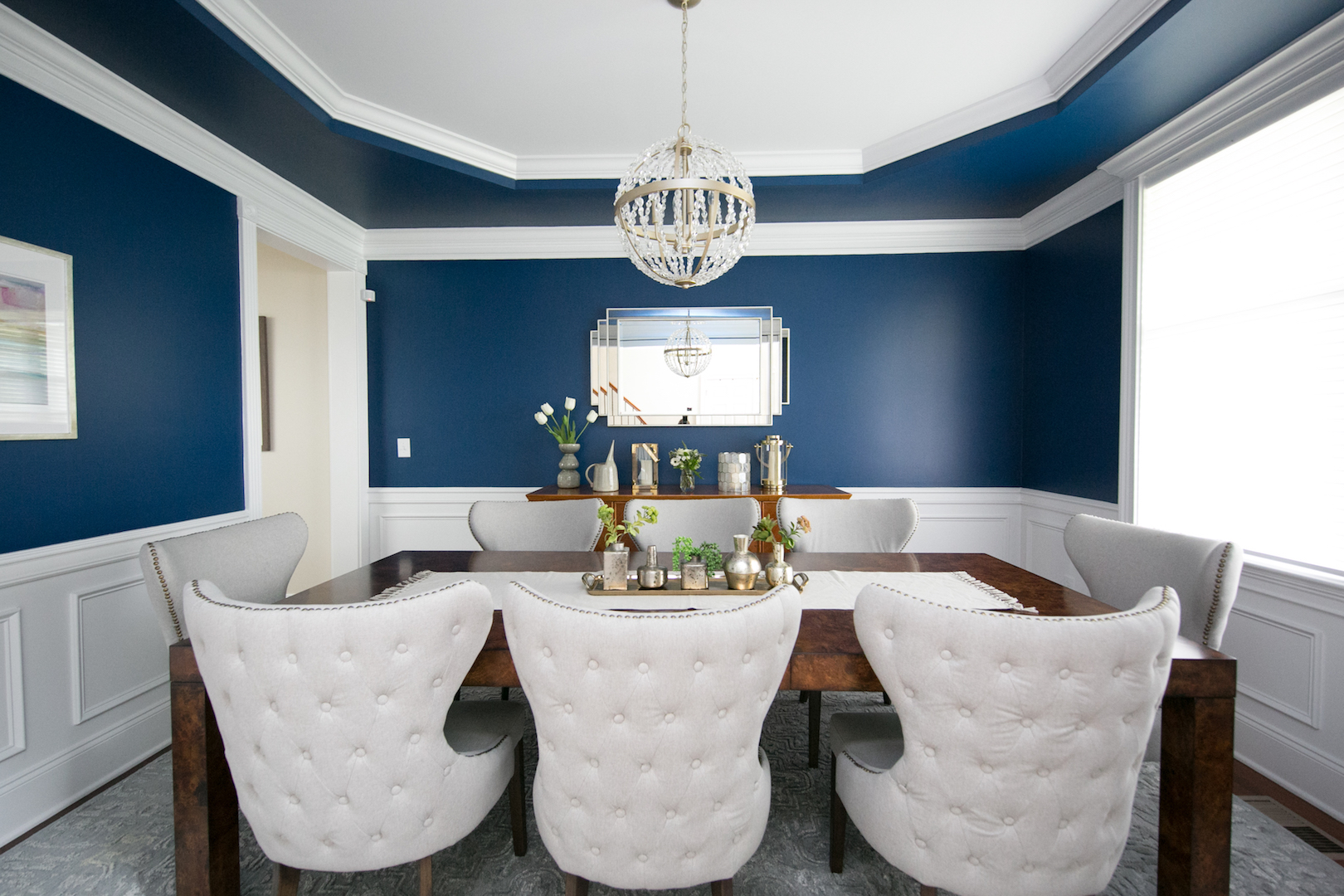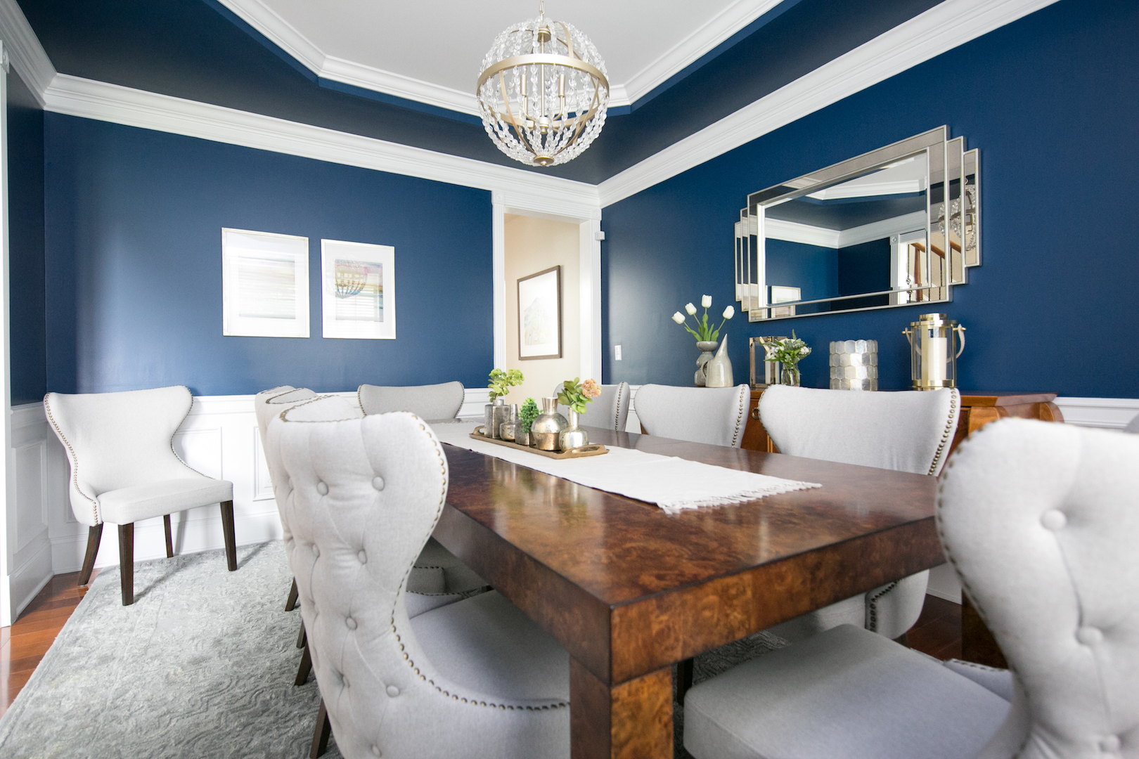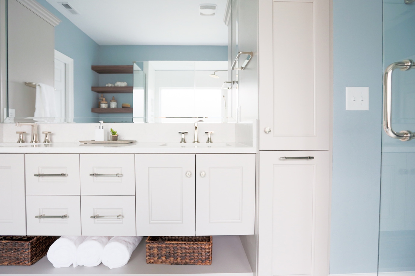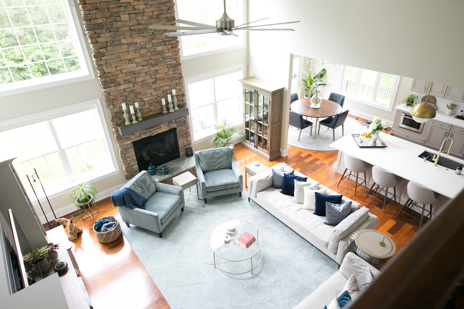 This interior design project in Durham, N.C., is an example of a comprehensive redesign carried out in phases. We enjoyed working with this lovely family in stages over a few years to transform the kitchen, family room, master bedroom and bath, home office as well as other spaces. The changes helped to illuminate their home in so many ways and feature more natural colors, graphic patterns and textures. See the before/after and read more about the dramatic master bathroom transformation.