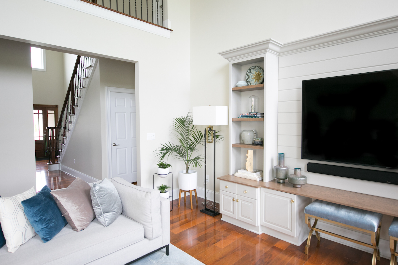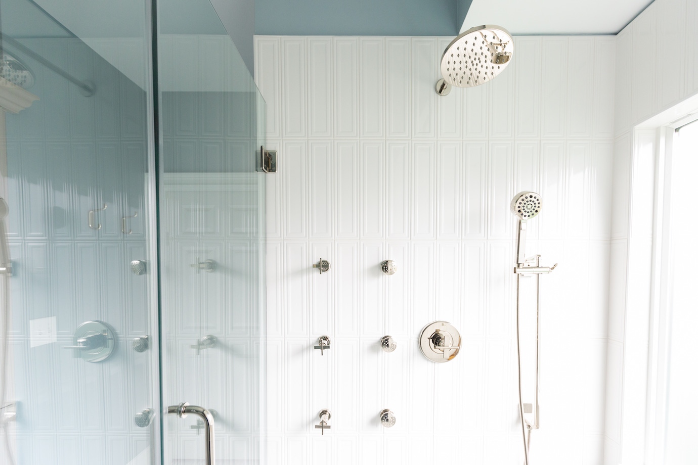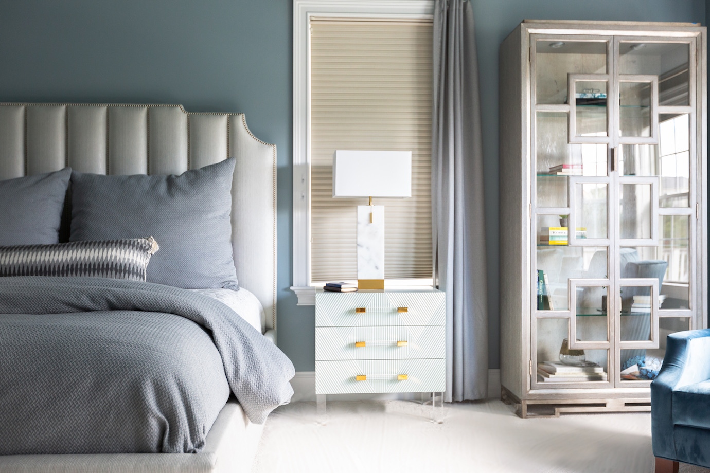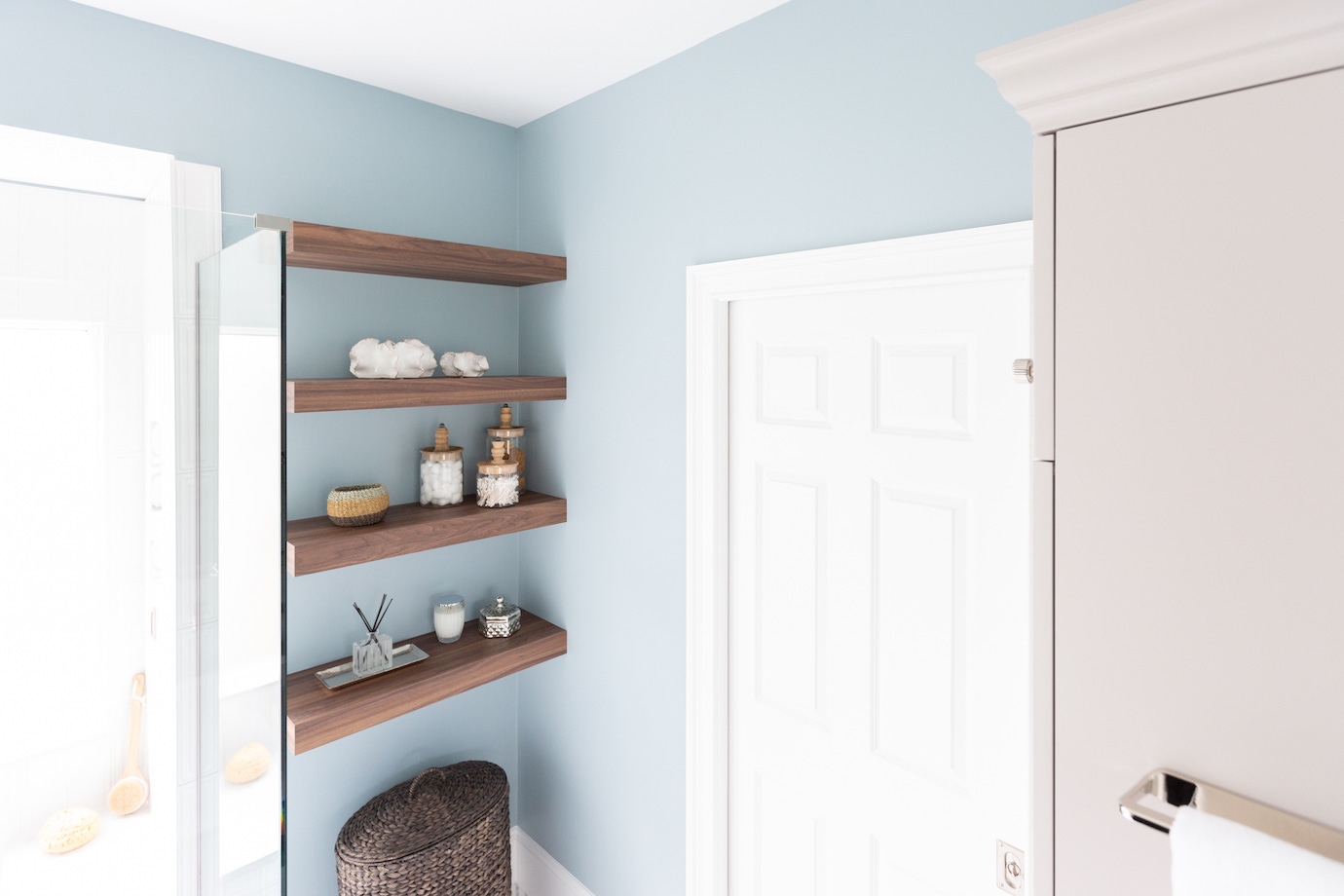 This interior design project in Durham, N.C., is an example of a comprehensive redesign carried out in phases. We enjoyed working with this lovely family in stages over a few years to transform the kitchen, family room, master bedroom and bath, home office as well as other spaces. The changes helped to illuminate their home in so many ways and feature more natural colors, graphic patterns and textures. See the before/after and read more about the dramatic master bathroom transformation.