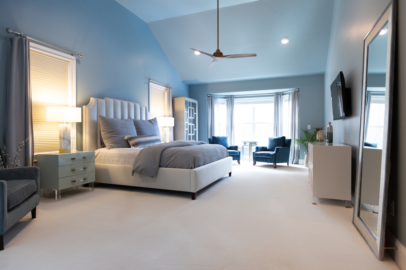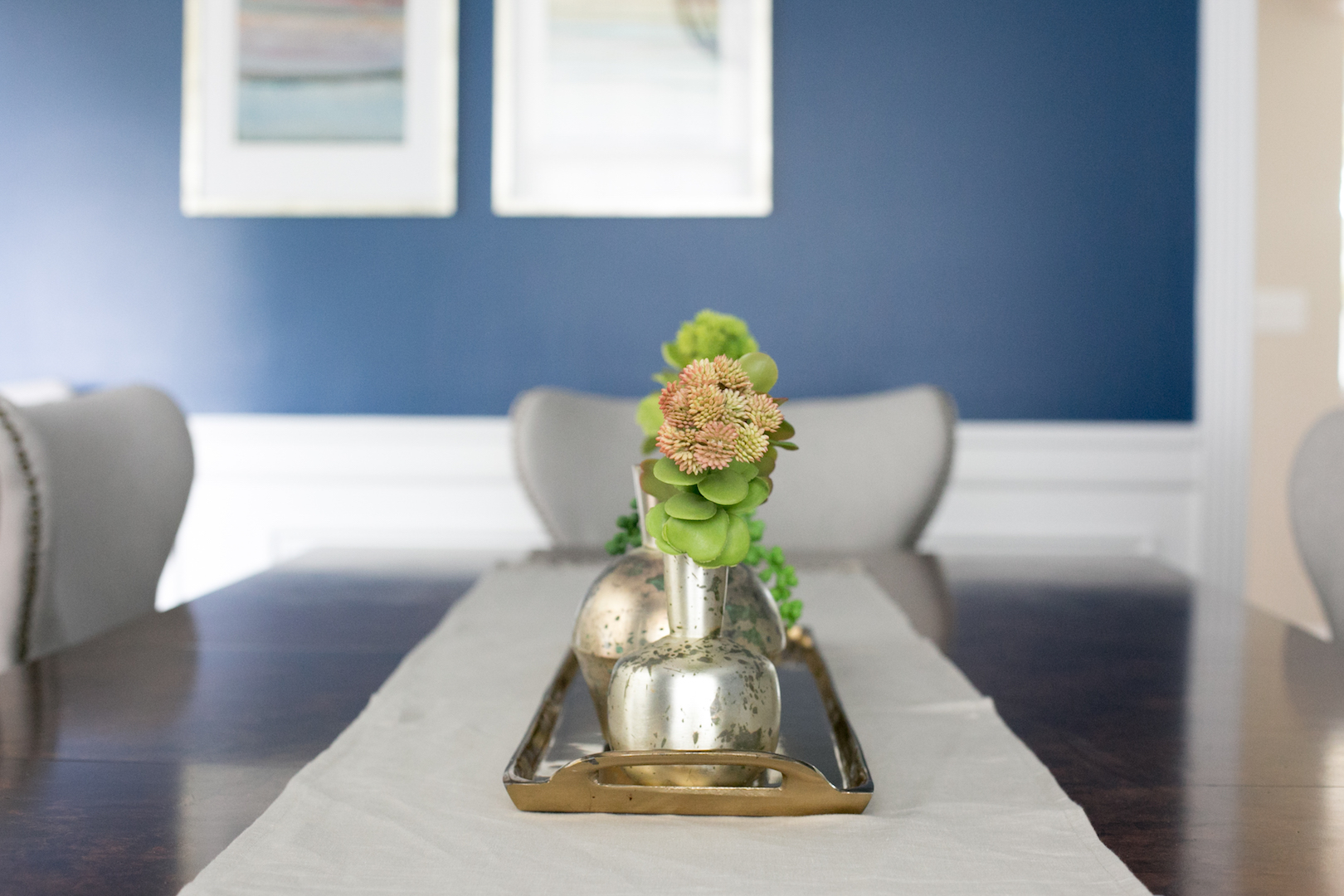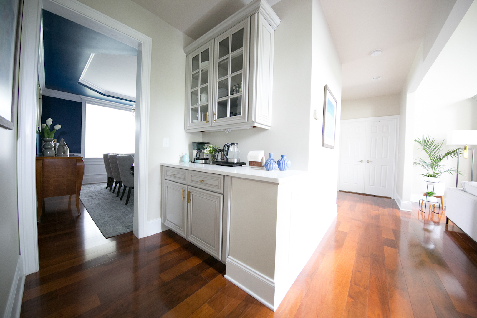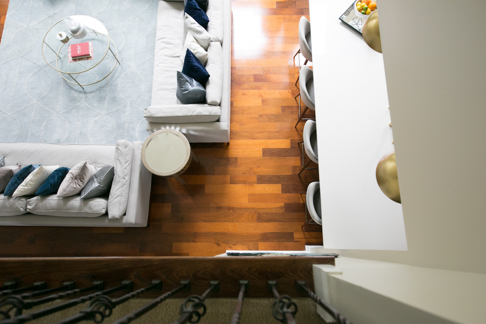 This interior design project in Durham, N.C., is an example of a comprehensive redesign carried out in phases. We enjoyed working with this lovely family in stages over a few years to transform the kitchen, family room, master bedroom and bath, home office as well as other spaces. The changes helped to illuminate their home in so many ways and feature more natural colors, graphic patterns and textures. See the before/after and read more about the dramatic master bathroom transformation.