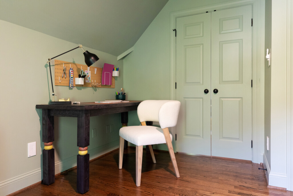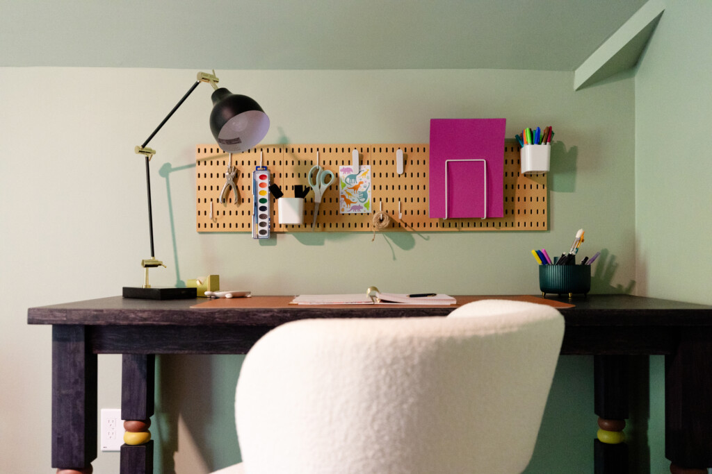 In the crafting nook, a custom TEWlines piece became the star. Designed specifically for the family’s needs, this desk brings both function and personality into the space. It highlights our studio’s passion for creating interiors that are tailored for the way our clients live.